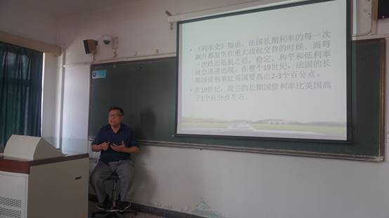 2018年6月13日下午,清华大学陈争平教授来我院作了题为“虚实经济与比较利率史研究”的讲座。讲座由经济学院经济史系主任兰日旭教授主持,经济学院部分教师、博士生,财政学院王文素教授、马金华教授出席讲座。本讲座获得2018年中央财经大学专题学术讲座项目资助。