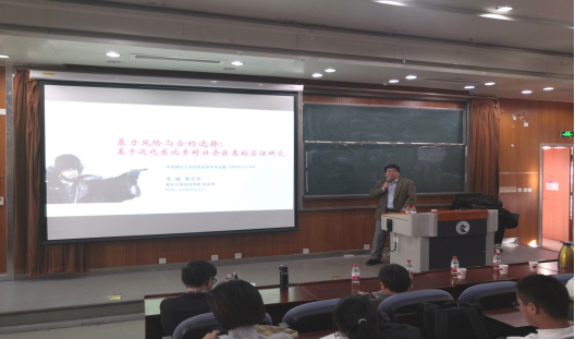 2019年12月11日,复旦大学经济学系李楠教授应乐鱼在线登录入口邀请,在中央财经大学沙河校区3号楼222教室开展了主题为“暴力风险与合约选择——基于近代东北乡村社会匪患的考察”的讲座,本次讲座由经济学院兰日旭教授主持,我校多名教师、博士和硕士研究生参加了讲座。