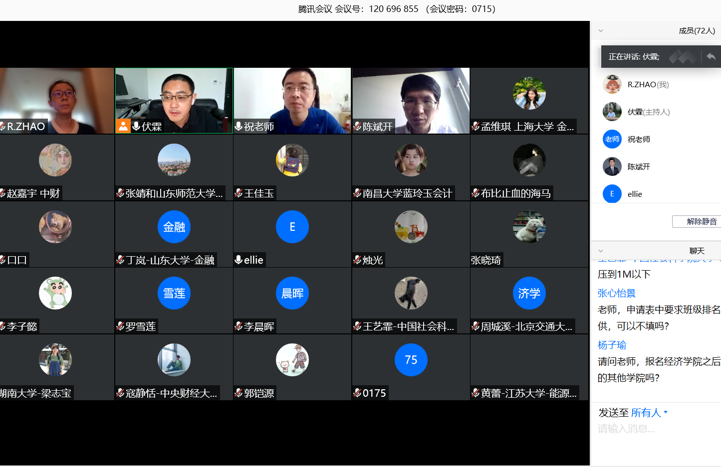 7月22日,第四届“龙马经济学夏令营”开营仪式通过腾讯会议举行。经济学院院长陈斌开教授、副院长伏霖副教授、导师代表徐翔老师、学院教学科研管理办公室主任祝伟老师、研究生工作办公室副主任赵若思老师和所有营员参加了此项活动。
