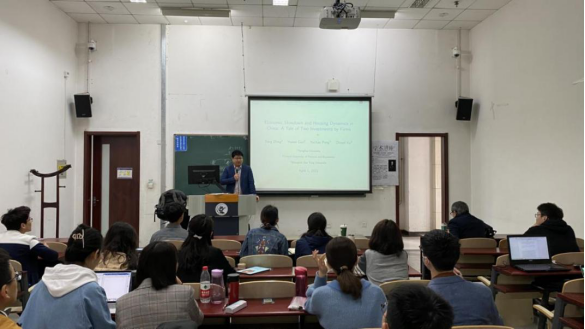 讲座在中央财经大学沙河校区主教105M教室举行。彭俞超老师做了关于“Economic Slowdown and Housing Dynamics in China:A Tale of Two Investments by Firms”的学术讲座。
