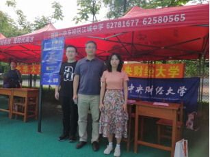 在高招咨询现场,招生宣传队伍与广大考生、家长进行了深入交流,发放了最新的宣传材料和纪念品。在现场,系统介绍了我校基本信息、学院专业设置与特色等各方面内容的咨询,认真详细地为有意愿报考中央财经大学的学子及其家长介绍近年来的录取分数线与省排位情况,向考生和家长全面展示了我校的优势学科、学科特色与办学成果,展现了我财教师和学生朝气蓬勃、积极进取的精神风貌。