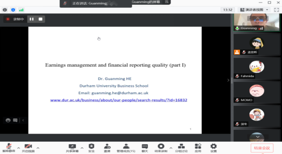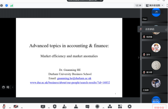 2021年9月20日至28日,英国杜伦(Durham)大学商学院何冠明副教授应乐鱼在线登录入口邀请,使用腾讯会议APP讲授行为金融专题研究短期课程。经济学院部分师生参加了此次课程。