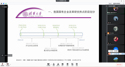 刘震老师讲到,十八届三中全会以来的国企混合所有制改革已开展了八年左右,取得了什么成效?存在哪些问题?如何从理论的视角分析和解读。刘震老师通过对过往文献的分析,对国有企业改革研究热点进行划分并详细介绍了本轮国有企业混合所有制改革的基本情况。刘震老师通过多年来从事国有企业的相关研究,结合今年的案例调研,从理论与实践两个维度和大家分享关于国企混改的一些思考。
