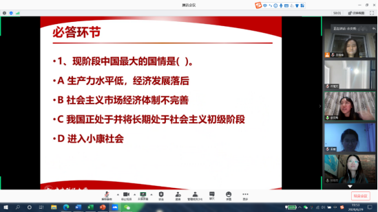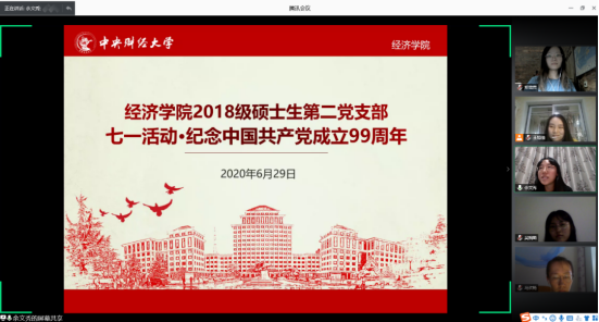 为庆祝中国共产党成立99周年、迎接七一建党节,2020年6月29日晚上,经济学院2018级硕士生第二党支部开展 “初心不忘、献礼七一”线上主题活动。次本活动分为主题党课、红色经典配音比赛和党史知识竞答三个环节,旨在回顾中国共产党建党历程、追溯党和国家砥砺奋进之路、牢记共产党人的初心使命。本次活动由党支部书记余文秀主持,党支部全体党员、预备党员和发展对象参与了此次活动。
