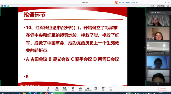 最后,党史知识竞答环节包含车轮战和抢答两部分,党员同志们踊跃答题,根据总分评选前三名。这一环节通过趣味答题的形式,回顾我党奋斗历史,领悟今天的一切成就来之不易。