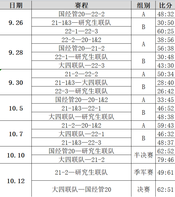 很高兴也很荣幸能够参与到此次比赛中,作为2022年的新经院人,此次比赛是我们来到中财大的第一个大型活动,“经英杯”给我们新人展示了一个有人情味的经济学院,也让我们作为经院新人有了一种归属感与幸福感。经英杯名为比赛,实为交流,在和学长的一场场比赛中传承经院精神,在场边观众的一声声呐喊助威中增强了新班级的凝聚力。四年的大学生活以经英杯为起点,我们也会争做经济学院的精英,争做中财大的精英,争做新时代的精英。