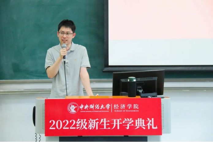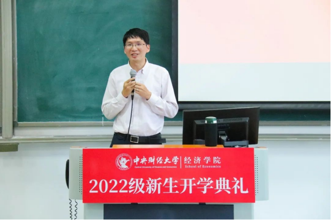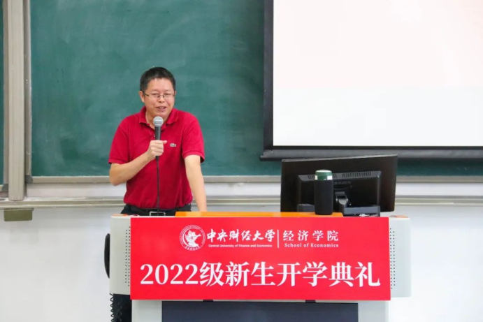 院长陈斌开以《青春起航,不负韶华》为题寄语新生,代表学院对2022级新同学的到来表示欢迎。他肯定了同学们在疫情冲击的困难下,仍能不懈努力、脱颖而出的坚强意志,介绍了中财大经济学院作为学校理论经济学的主要建设单位和应用经济学的重要建设单位,学科建设完善,师资队伍雄厚,期待大家在经济学院实现梦想,满载而归,成为同学们青春起航的新起点。针对如何度过大学生活,他对新生提出四点建议和希望:
