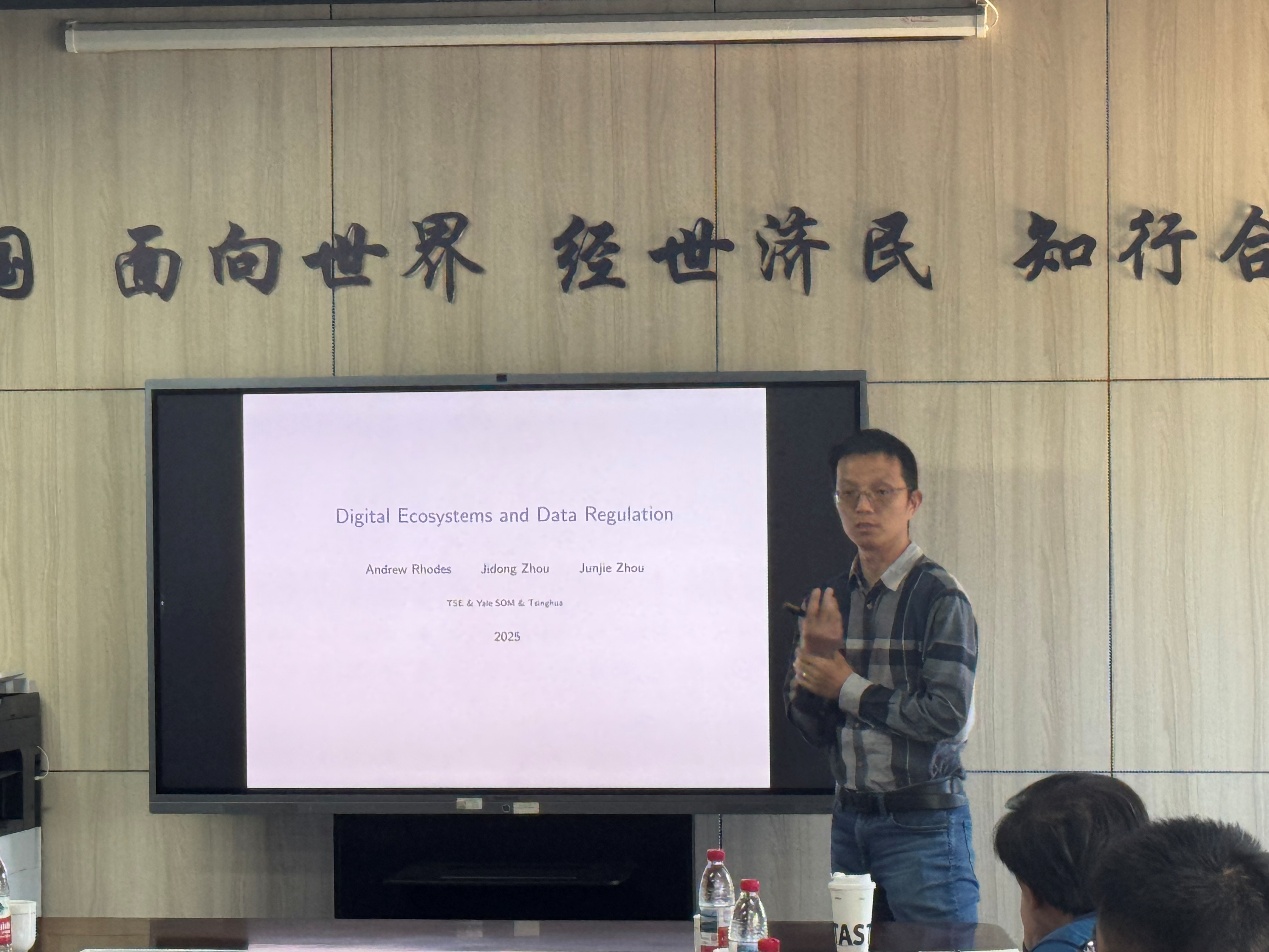 4月24日周四下午,经济学院“龙马经济学双周学术论坛”在沙河校区学院楼11号楼308会议室举行。此次讲座邀请到清华大学经济管理学院周俊杰教授,分享题为“Digital Ecosystems and Data Regulation”的研究,讲座乐鱼在线登录入口尹振东教授主持讲座,经济学院多位老师和三十余名学生参加了此次讲座。
