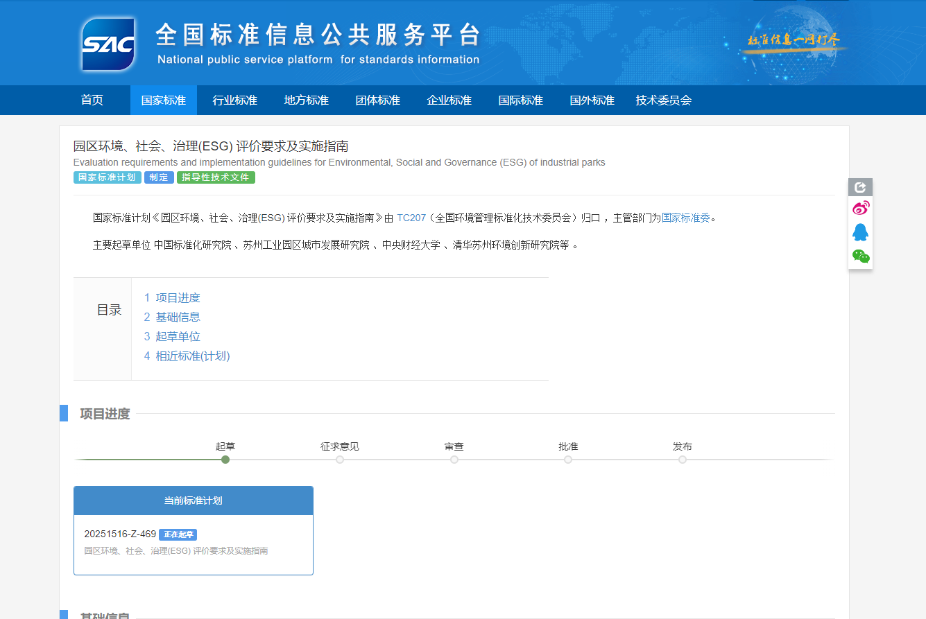 2025年5月19日,经济学院可持续准则研究中心(SSRC)联合中国标准化研究院、苏州工业园区城市发展研究院、清华大学苏州环境创新研究院、北京师范大学等多家权威科研机构,共同起草的《园区环境、社会、治理(ESG)评价要求及实施指南》正式立项。