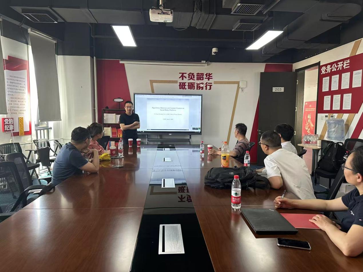 6月6日(周三)下午,中央财经大学2025年专题学术讲座在沙河校区学院11号楼203会议室举行。此次讲座邀请到美国康奈尔大学商学院经济系助理教授陈轶博士,分享其题为“Algorithmic Attention and Content Creation on Social Media Platforms”(社交媒体平台上的算法注意力与内容创作)的最新研究。乐鱼在线登录入口龚雅娴副教授主持讲座,经济学院多位老师和十余名学生参加了此次讲座。