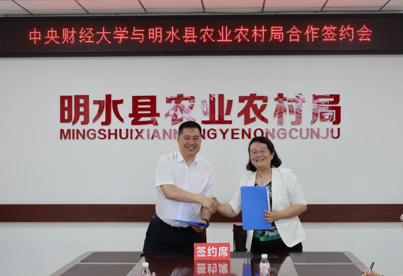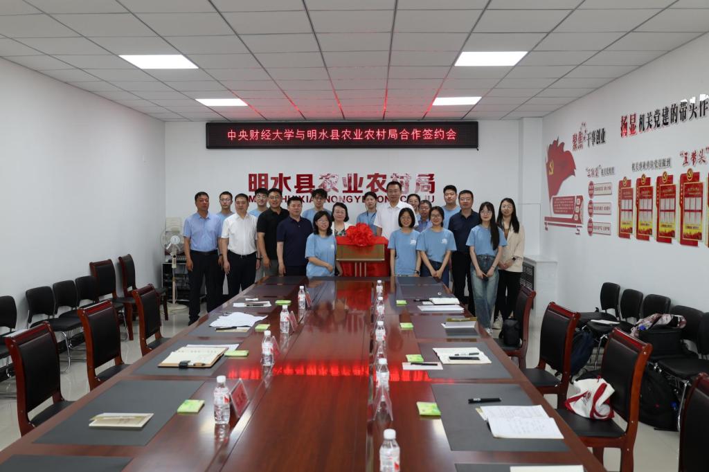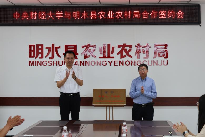 7月7日上午,经济学院调研团队与明水县农业农村局共同开展中央财经大学乡村振兴研究生服务站合作签约暨揭牌仪式。明水县委书记马福,学院党委书记孙敏以及学院教师、博士、硕士研究生代表,县农业农村局相关负责同志参加活动。会议由县委常委、组织部长李朝阳主持。
