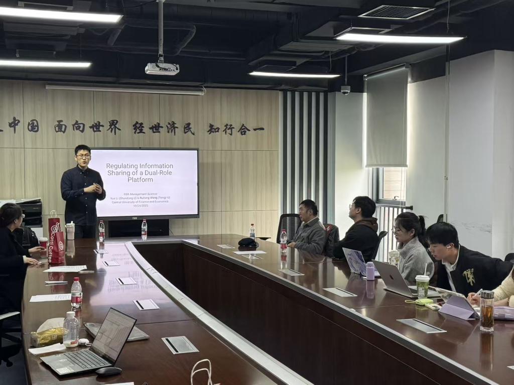2025年10月24日周五下午,经济学院“中青年学者讲座”在沙河校区学院楼11号楼308会议室成功举办。本次讲座特邀同济大学经济与管理学院副教授王睿通,就平台经济中的信息共享策略与规制问题带来题为“平台双重角色下的信息共享策略与规制研究”的学术报告。讲座由乐鱼在线登录入口龚雅娴副教授主持,经济学院多位教师及三十余名学生共同参与。