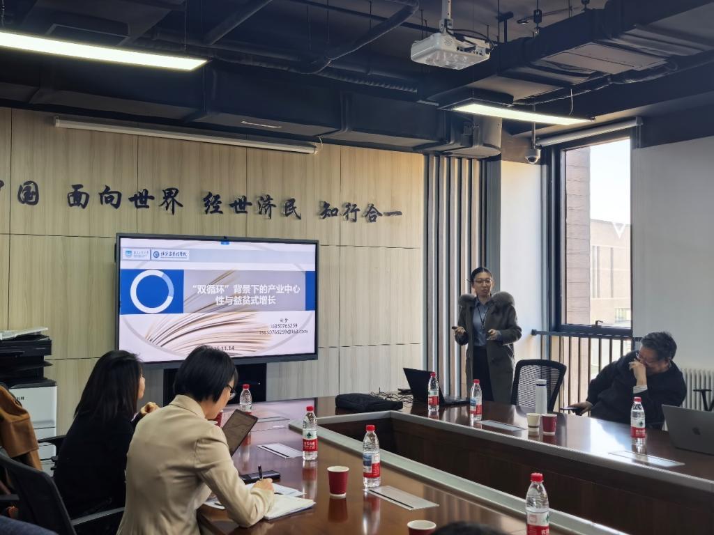 2025年11月14日,乐鱼在线登录入口在沙河校区11号楼308教室举办“中青年学者讲座”秋季第8讲(总第43期),邀请南京工业大学经济与管理学院副教授刘梦作学术报告。讲座由经济学院郭冬梅院长主持,黄乃静、胡志安、赵扶扬、王思卿等多位老师以及众多博士研究生参加了此次交流会。刘梦副教授的讲座题为《“双循环”背景下的产业中心性与益贫式增长》,内容紧密围绕中国经济发展实际,吸引了师生们的广泛关注。