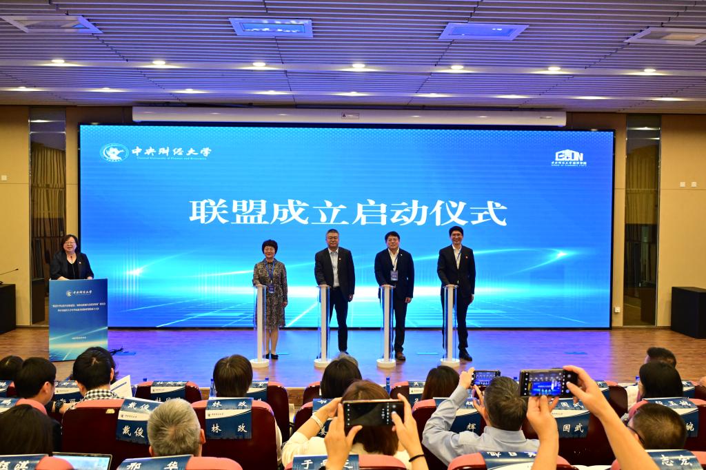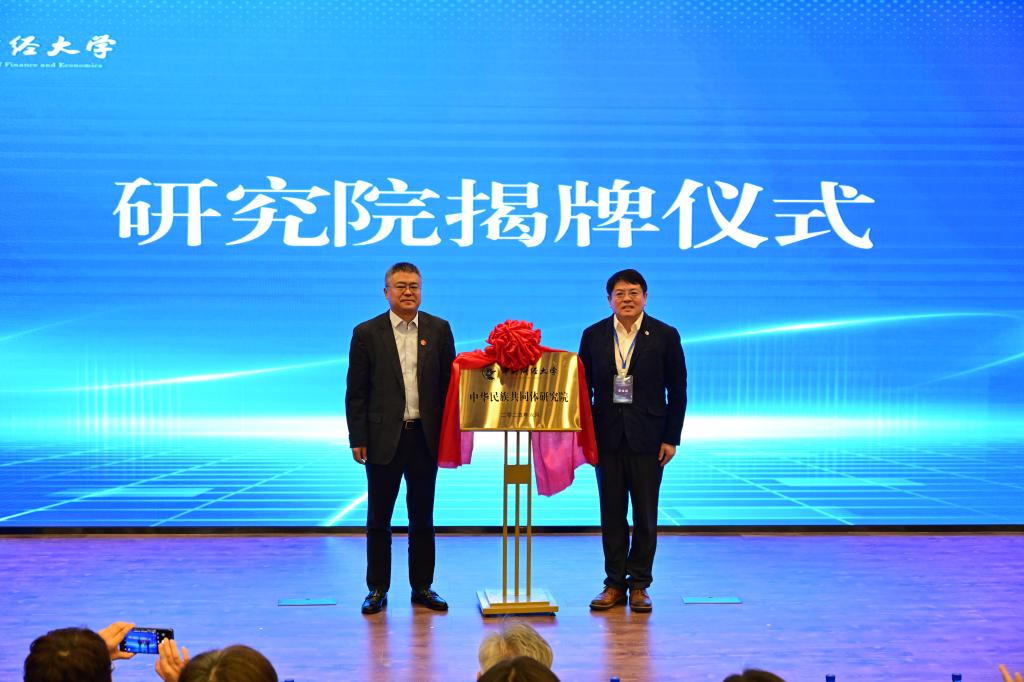 会上举行了中央财经大学中华民族共同体研究院揭牌和中华民族共同体经济学联盟成立仪式。