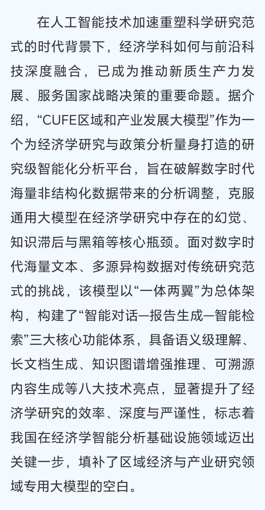 上一条:第二届全国数字经济学术年会在中央财经大学召开 下一条:【现代教育报】中央财经大学发布“区域和产业发展大模型”,打造经济学研究智能新范式